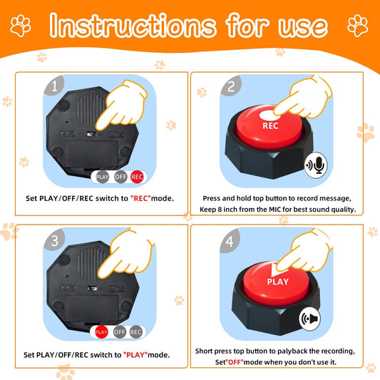 Set of 4 Dog Buttons,Including 2 Mats, Training Guide and Pre-Installed Battery. Dog Voice Training Buzzer ,Recordable Button ,Train Your Dog to Make the Sound They Want (Battery Included)
