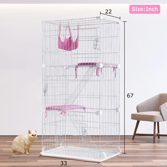 Hammock Playpen Cat Cage, 3-Tier, Black, 67-In
