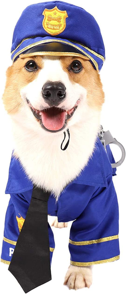 • Halloween Dog Pet Police Costume Velcro Shirt with Belt, Handcuffs, Walkie Talkie for Halloween Dress-Up Party, Role Play, Carnival Cosplay, Holiday Decorations Clothes
